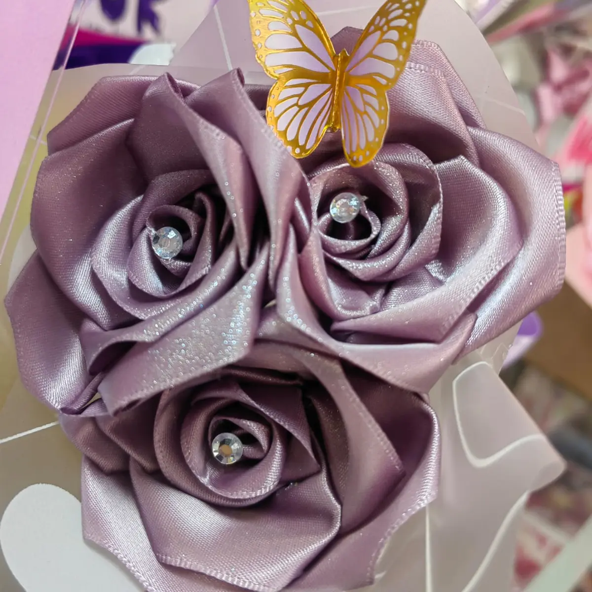 Decoración de ramo (papel coreano, escarcha, mariposas y lazo)